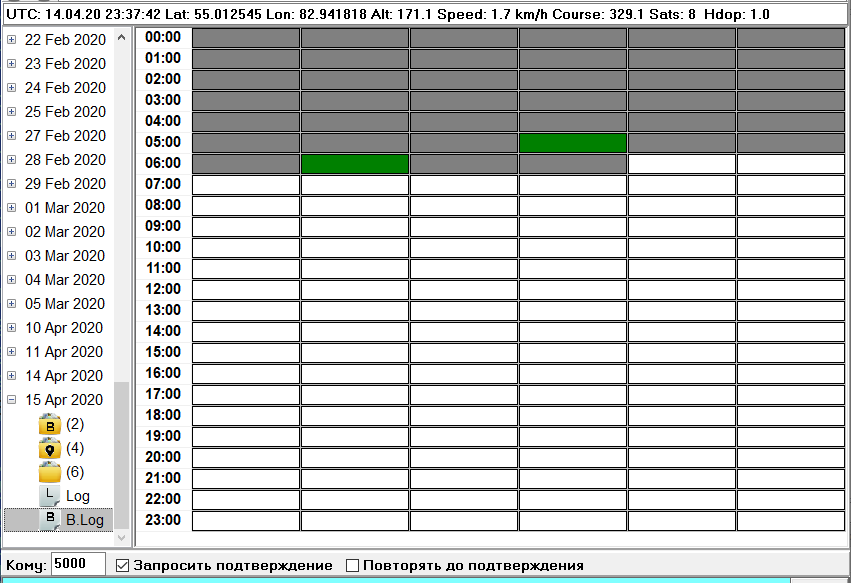 - принятые за сутки маяки, содержащие GPS-координаты;