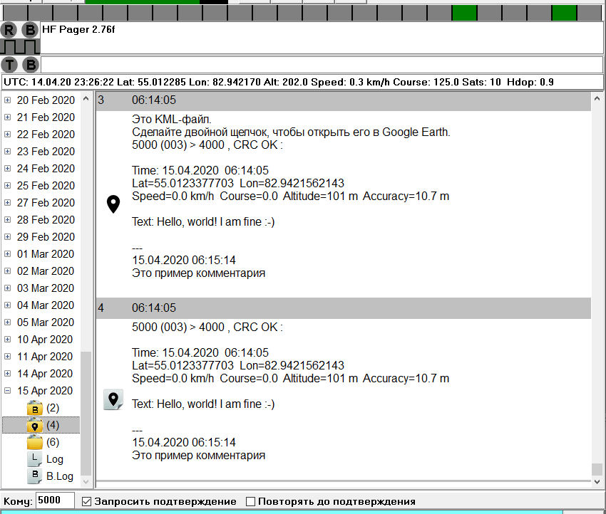 , в виде обычного текста и в виде KML-файла. При этом в этой папке отмечается не время